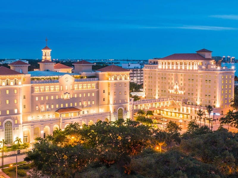 Till vänster Saint Hill i England, inköpt redan på 60-talet; här höll Hubbard många av sina mest kända föredrag. Till höger Scientologikyrkans högkvarter i Florida, där en ny byggnad för 145 miljoner dollar tillfördes relativt nyligen. (se https://www.businessinsider.com/photos-of-scientology-headquarters-2015-10 )